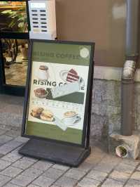 #EmotionalCafe #CafeRecommendation #ChinaTravel #Couple I'll introduce you to a cafe that I really liked in Qingdao!! . It's Rising Coffee on Zhongshan Road. It's famous among Chinese MZs and Korean tourists because of its great cafe atmosphere. I ordered a chestnut cake, latte, and Americano, and the cake was really soft and had a lot of chestnut flavor, so it was delicious! The coffee was just average! And most of all, it was great that they had a smoking area outside! I always went into stores in China because of the smell of cigarettes and came back out, but this place was really nice because there was no smell👍🏻 If you're traveling to Qingdao, China, you should definitely visit there.
