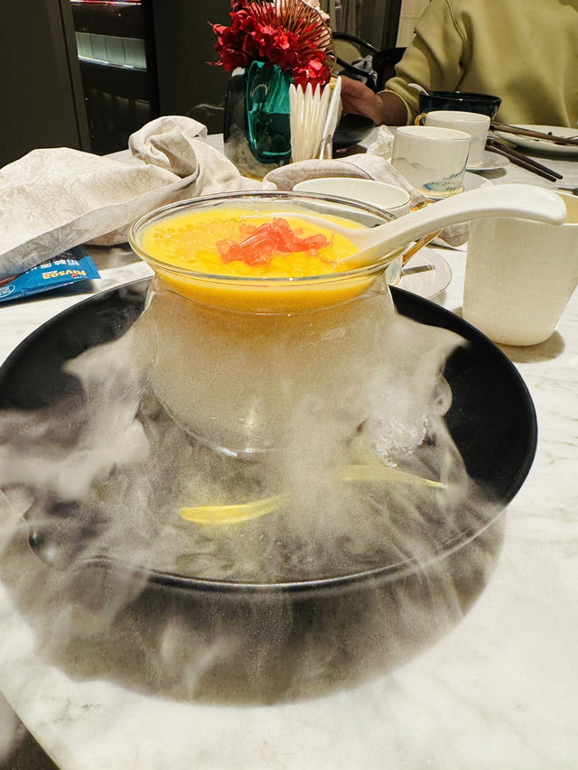 #discoverchina If you're someone who loves to try new and adventurous foods, then this restaurant is a must-visit. The menu featured a wide range of Chinese dishes, including some unique and exotic options. I liked an egg dish topped with prawns, which had a surprising texture of pudding. But the real star of the show was the mango sago dessert. The combination of the sweet mango and the creamy sago was absolute perfection. Dining at the beach viewing restaurant was a relaxing and enjoyable experience. The staff were friendly and attentive, and the atmosphere was calm and peaceful. It was the perfect place to unwind and enjoy a delicious meal.