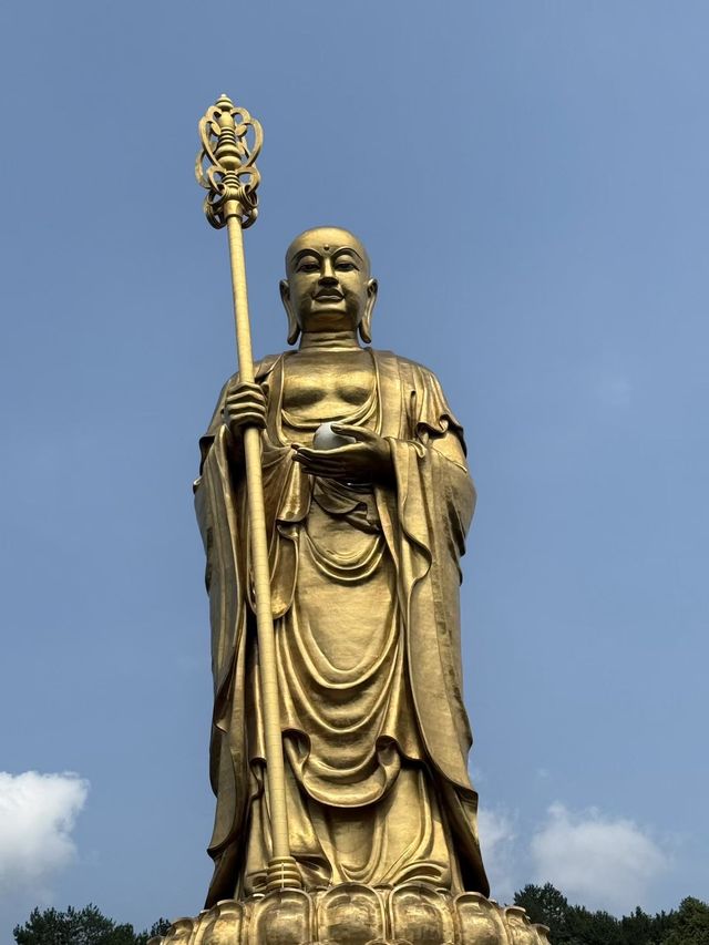 Jiuhua Shan is very beautiful with many different temples. I bought the tickets on site at the ticket center; unfortunately, I couldn't buy them through trip.com. I also bought a ticket for the shuttle bus. From there, you can walk everywhere or take the cable car. There's also a cable car to Jiuhua Mountain, which costs 180 yuan. I skipped this because I didn't mind walking back. The Jiuhua Mountain Dayuan Culture Park is another park, but it's completely free unless you want to use the shuttle bus within the park or enter the buildings. I mainly came for the giant Buddha, which is 99 meters tall. You can see these two parks in one day. That's long enough, considering there's not much else to do.