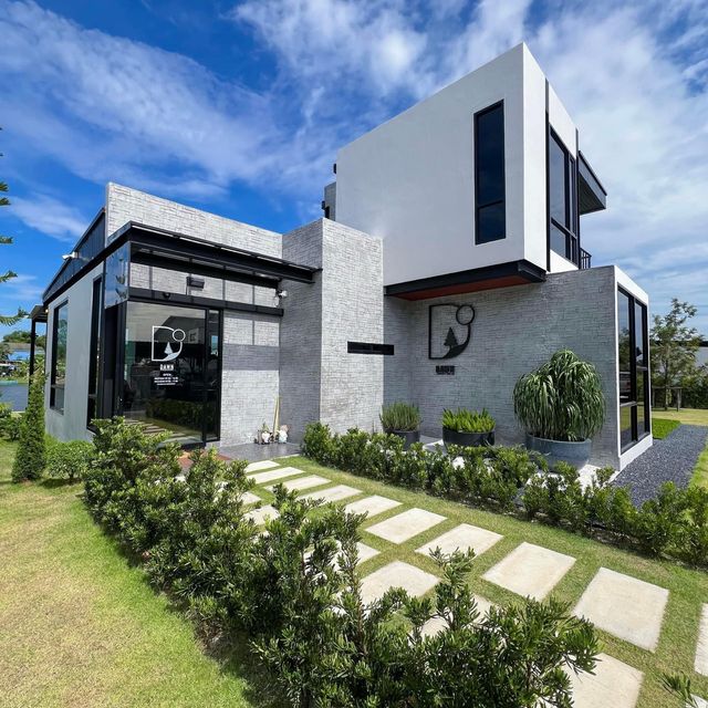 A black box-shaped cafe in Rayong. The shop is beautiful and very cool. ✨