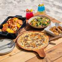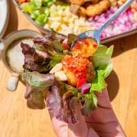 🏖️🍕🍝 Overwhelmingly irresistible! A million-dollar atmosphere that you can't miss when visiting Koh Samet. It's a feel-good place that offers a full luxury experience from morning till night. There's no chance of loneliness here because everything you need is in one place: a restaurant, cafe, and chill-out bar. Plus, there's live music and fire spinning shows every night to dazzle you. There are plenty of lounging areas to relax, whether you want to enjoy the sea breeze or move indoors for some cool air-conditioned comfort. And that's not all! There are also plenty of stunning photo spots for content creators to check in. So get your outfits and cameras ready; you really can't miss this. As for the menu, it's a feast for those who are hungry with a wide selection of Thai and European dishes, desserts, and refreshing drinks. Let's see what catches your fancy. 🍗 Fried Chicken Wings with Fish Sauce - A popular appetizer that's uniquely flavored here with a hint of sweetness and a light saltiness, crispy skin, and juicy meat. 🍽️ BANG BANG Seafood Boil - A generous serving of seafood including shrimp, squid, crab, and shellfish, with hearty toppings and a rich, well-seasoned taste without any fishy odor. 🍽️ Snapper Miang - A grand dish served with bite-sized fried snapper pieces accompanied by various side dishes including white noodles, fresh chili, lime, ginger, shallots, peanuts, salad greens, and a spicy dipping sauce. 🍽️ Berries, Avocado, and Corn Salad - A healthy salad that's crisp and fresh, drizzled with a special dressing that's sweet with a hint of sourness. 🍕 Truffle Pizza - Thin and crispy pizza dough with generous toppings, gooey cheese, and the full flavor of truffles. Finish off with refreshing drinks like Summer Spark, Coconut Butterfly Pea, and the ultimate dessert, Chocolate Lava 😋 For those looking to change up their relaxation scene, there's also the hotel and villa zone of Sai Kaew Beach Resort. The accommodations even have a secret highlight: a heart-shaped tree for capturing beautiful photos, exclusive to In House guests only 🥳 🗺 Location: Sai Kaew Beach, Koh Samet (within Sai Kaew Beach Resort) 🕑 Monday - Sunday 11.00 - 23.00 hrs 🎇 Fire Show: Every day at 19.30 hrs (Weekday) and 20.30 hrs (Weekend) 🎶 Live Music: Every Thursday - Monday from 19.15 - 22.15 hrs.
