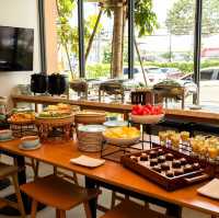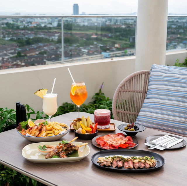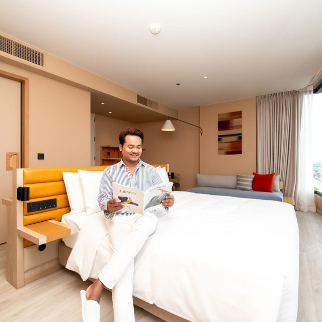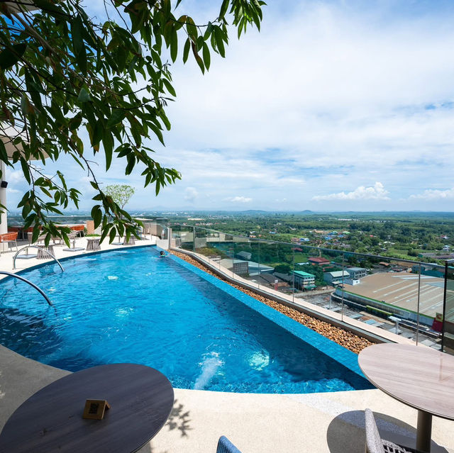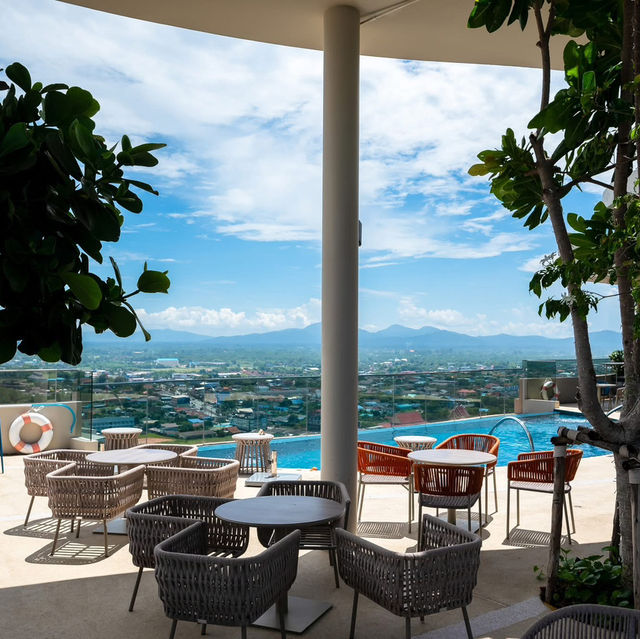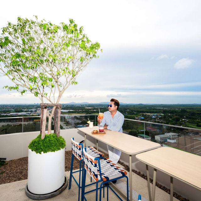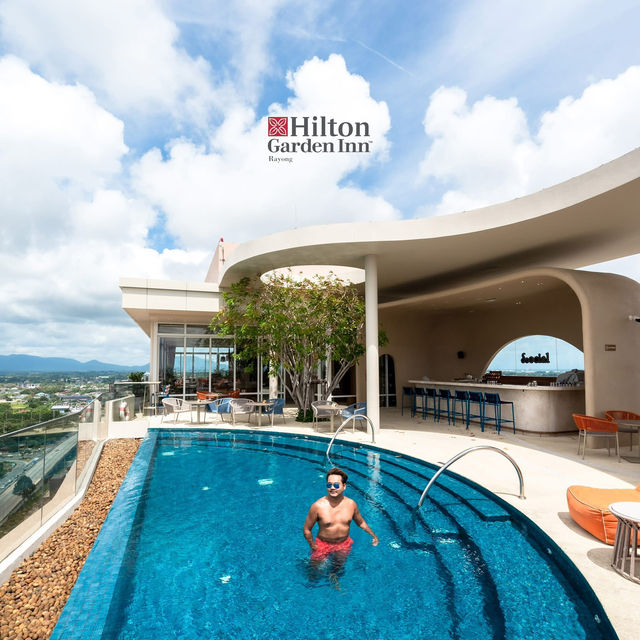 ☀️ Hilton Garden Inn Rayong A hotel in a prime location next to CentralPlaza Rayong. Highlights include a rooftop swimming pool and rooftop bar offering stunning 360-degree views of both the sea and mountains. 👉 Another great location in Rayong, right next to CentralPlaza Rayong, just a few steps from the mall for easy shopping. 📍 The hotel is a high-rise building with panoramic views of both the city and nature, surrounded by mountains and the sea. 🏊🏻♂️ The hotel offers a full range of amenities, including a fitness center, swimming pool, rooftop bar, and restaurant. 🛌 We recommend the Corner Room. This 32 sq m room is a perfect size. It features a sofa seating area for relaxing or converting into a bed. And the room also offers stunning views from the glass windows. 🍸 Enjoy a relaxing drink at the Social Rooftop Bar on the 25th floor, while enjoying the sea and sunset views. Or enjoy dinner in the evening. The swimming pool is also located on this floor. Enjoy a panoramic view of the swimming pool from above. 🍽️ Another highlight not to be missed at Together & Co is their all-you-can-eat Thai buffet for 259 baht++. They offer both savory and sweet dishes every Friday, Saturday, and Sunday. Highlights include stir-fried noodles with shrimp, chili paste, and tom yum noodles. ✅ If you're looking for a place with a great atmosphere, beautiful views, and, most importantly, a great location, we highly recommend this place.