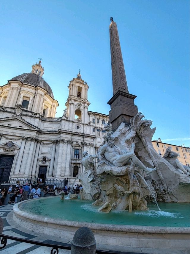Piazza Navona is one of Rome's most famous squares, once the site of the ancient Roman Stadium of Domitian. The square features three exquisite fountains, the most renowned of which is the Fountain of the Four Rivers designed by Bernini, with its towering obelisk at the center echoing the grandeur of the nearby Sant'Agnese in Agone Church. Surrounded by a variety of cafés, restaurants, and street performers, the square offers a perfect destination to experience Roman life and immerse oneself in an atmosphere rich with art and history. #mytraveldiary