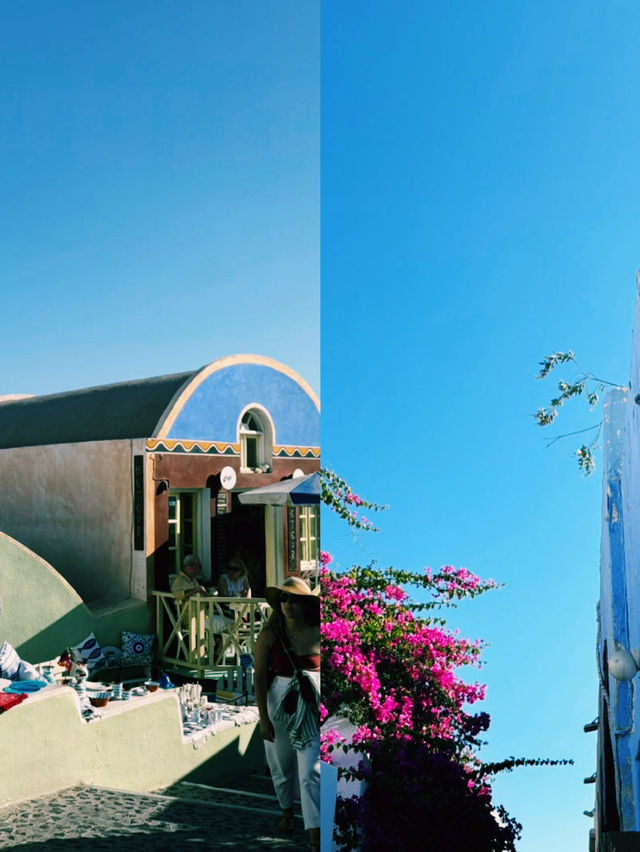 Oia, one of the most picturesque villages in Santorini, showcases different charms during the day and night. The white buildings with blue roofs lining the narrow alleys, along with the quaint cafes and shops nestled between the streets, exude the unique atmosphere of Santorini. During the day, the sparkling buildings under the sunlight blend harmoniously with the blue Aegean Sea, captivating travelers' eyes. Strolling through the alleys, visitors can enjoy shopping at small souvenir shops or local craft stores and have fun taking photos at spots that look like picture-perfect photo zones. As you walk leisurely, you'll come across gardens adorned with olive trees and flowers, as well as small churches, allowing you to fully immerse yourself in the essence of Santorini beyond mere sightseeing. In the evening, as the sun sets on the horizon, you can witness the legendary sunset of Oia Village, making both day and night the highlights of your trip. 📍 Oia, Santorini, Greece