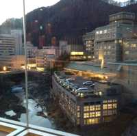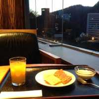 I arrived at the hotel around noon, and there was an available room, so I was able to check in early. I didn't know that the hotel even had a guest lounge. I was just going out for some water and coffee to warm me up, but I found out that they have a honey buffet in the afternoon. They offer a variety of honey flavors to try, along with unlimited refills of crackers and wafers. I really enjoyed it. Sipping drinks and tasting honey, with the view of the river behind the hotel, was truly blissful. I noticed that the leaves had almost all fallen. Due to the mountainous terrain, the leaves change color earlier than in Sapporo. In the evening, I was waiting to see what a truly authentic Japanese dinner would look like.
