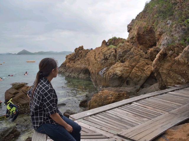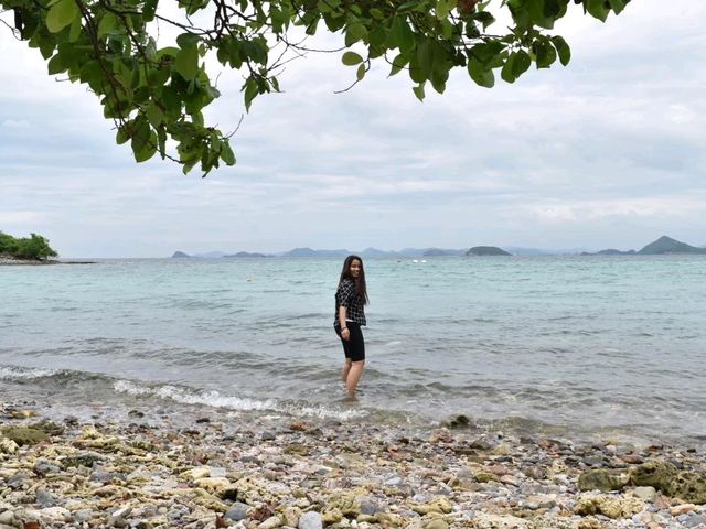 Koh Kham, Sattahip District, Chonburi Province, is a popular tourist destination near Bangkok, about two hours from Bangkok. You can go there in the morning and return the same day, or you can book accommodation in Sattahip District and return the next day. We took a van from Bangkok and got off at Sattahip. Then, we took a red songthaew to the ferry pier to Koh Kham. The park entrance fee is 250 baht. There are no accommodations on the island, but there is a small restaurant where you can eat, restrooms, and snorkeling. It was a fun trip with friends. It took only a short time to relax. #ChonburiTravel