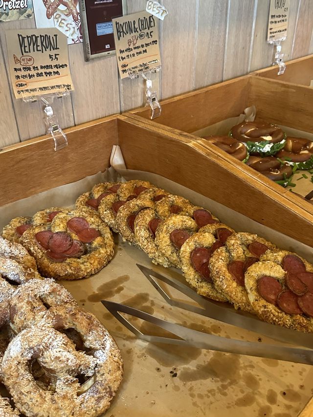 #OverseasTravel 📍BREADYPOST Breadstop Introducing BREADYPOST Breadstop, a pretzel specialty cafe located in the hot area of ​​Seongsu-dong🥨☕️ Another hot area right now, this cafe has become popular in Yongsan, and the Seongsu store has just opened✨ The Seongsu store is very spacious and has terrace seating🌼 The interior of the store has a European, overseas atmosphere and is very stylish! This is a pretzel specialty store🥨, so you can enjoy a wide variety of pretzels! There are so many varieties, from sweet to salty, that it's hard to choose 🎶 I got the fig pretzel and the salami pretzel, and both were delicious and I liked them 😊 Takeout is available, but if you're eating in, you should first secure a seat and choose a pretzel 💕 It's cute to eat in the store, but the takeout is also in a cute bag, so it's sure to look great in photos ✨ If you're going on a cafe tour at the Seongsu store, I highly recommend BREADYPOST 🥨 📍 BREADYPOST Breadsticker Seongsu Seongdong-gu, 1-1-1, Ttukseom Station, Subway Line 2, Exit 5 10:00-20:00 #KoreaTrip #Korea #Overseas #OverseasTrip #KoreanGourmet #Gourmet #LivingInKorea #trip2023 #Seoul#cafe#cafe hopping#Seongsu-dong#bakery#pretzel