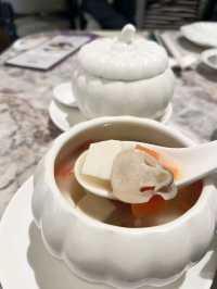 Styled like the imperial kitchen’s "Shang Yang Lou," the restaurant features a luxurious design with deep green walls paired with mirrors, creating an elegant atmosphere. Every detail reveals an artistic taste, elegant yet fashionable. The staff are friendly, making dining here undoubtedly a pleasure. Whether dining with friends or hosting a business banquet, "Shang Yang Lou" is definitely a great choice. Today's menu: Selected lunch set West Lake fresh tomato seafood soup Wasabi whelk Cucumber jellyfish head Goji berry siu mai Fresh shrimp spinach dumplings Pear salted dumplings Guizhou sour soup noodles Blanched seasonal vegetables Osmanthus cake Cost: $398, plus 10% service charge The mall is connected to the MTR, super convenient 👍👍 Excellent location! Shang Yang Lou (Tai Wai) 📍Shop 329, 3rd Floor, Wai Fong, 18 Che Kung Miu Road, Tai Wai