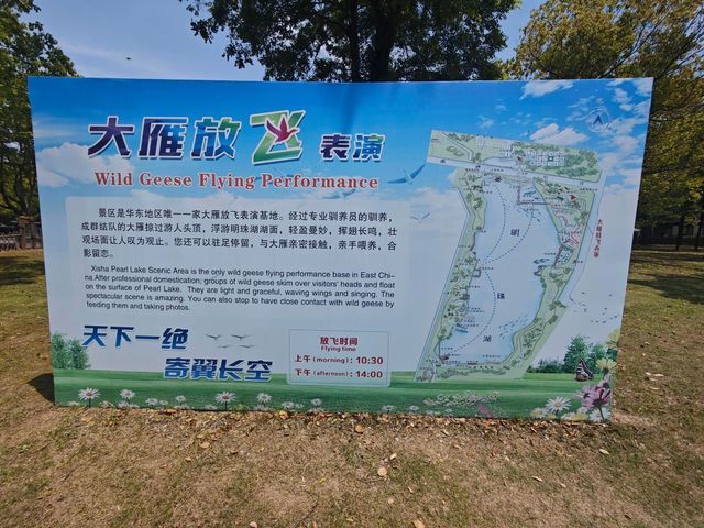 A beautiful landscape - the release of wild geese at Mingzhu Lake.