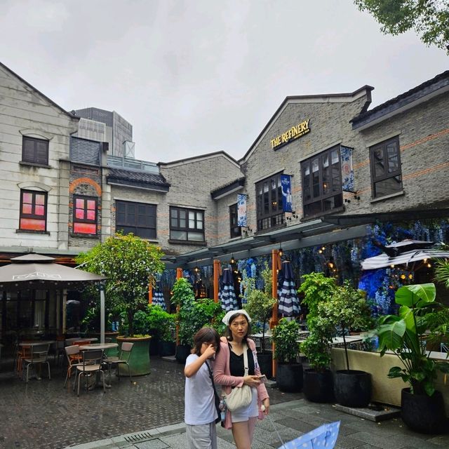 Xintiandi is full of artistic buildings with unique character. It’s a concentrated area where you can find restaurants, bars, and shopping, and the buildings are exotic, making every corner a photo spot. With many people and a great atmosphere, you can sit down, enjoy a beer, and have a good time. The outdoor terrace seating at therefinery is really wonderful. Great food spots