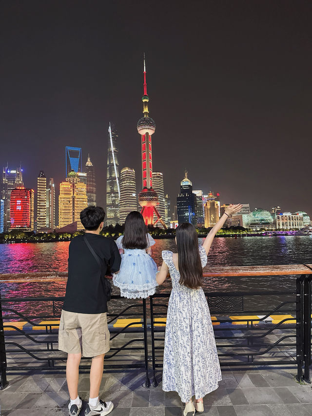Not in London, but at The Bund! The illuminated Bund is simply an earthly paradise. Wealth and charm captivate the eyes. Brave the magic city with the kids. 🪐💫 The cluster of international buildings at night has clear outlines, and the lights weave a dreamy atmosphere. Walk along the river to the North Bund Little Giant Egg! Closer to the Oriental Pearl Tower!! Better for photos! - 🌿🌿【Warm Tips】 1⃣ The Bund lighting time: From November to January, The Bund lights up at 6 PM, and the Customs House clock chimes every 15 minutes. 2⃣ Best spots for photographing the lights: At the entrance of the Ship and Merchandise General Office, The Bund Golden Bull Square 3⃣ It’s very cold in Shanghai recently, with low temperatures and strong winds at The Bund at night! Be sure to keep warm when traveling 🤗🤗❗❗ Bring down jackets 🧥, gloves 🧤, and scarves 🧣.