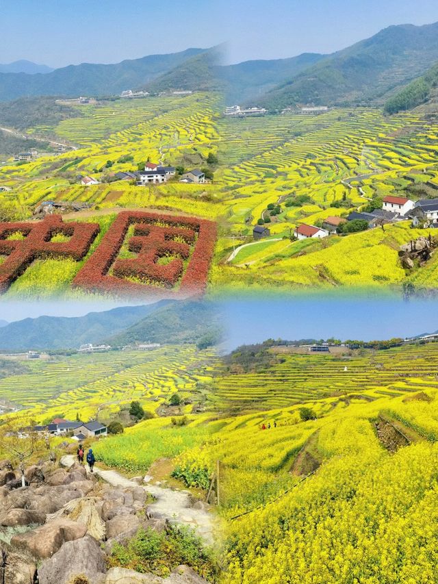 Fields of terraced rapeseed flowers blanket the mountainside, and from the summit, the view is like a stunning spring scroll. The terraces cascade down from the mountainside, arranged in a well-ordered fashion, with the golden 'waterfalls' set against the green mountains, creating a spectacular sight. The terraced fields, which cover more than 2,300 acres and number over 23,000 of varying sizes, have a history of at least five hundred years and are all built from rocks from the Quaternary glacial relic—the 'stone glacier'. The Fuchun Mountain Rapeseed Flower Festival starts on March 16th and is definitely worth a visit! Come to Shaoxing Fuchun Mountain to witness the charming beauty of one of the top ten 'golden flower attractions' in East China and have a romantic date with the rapeseed flowers! 📍Navigation address: Dongcheng Village, Shangyu District, Shaoxing City, Zhejiang 🎫Ticket: Free ✅Transportation Guide 🚌Public Transportation: Take a long-distance bus from Hangzhou, Ningbo, and other places to Shangyu, then take the 609 bus from the East Bus Station to the foot of Baihu Mountain to reach the entrance of the scenic area. Or arrive at Shengzhou Bei High-speed Railway Station and take a taxi to the scenic area for about 35 yuan. The scenic area has no admission fee, and the shuttle bus round-trip ticket is 10 yuan. 🚗Self-driving: It takes about 2.5 hours to drive from Shanghai, directly navigate to the 'Fuchun Mountain' parking lot. During weekends and holidays when it's crowded, traffic control will be implemented, and private cars are not allowed to drive up the mountain; you must take the scenic area's shuttle bus. 🍱Dining There are three Moonlight Cafés recommended near the scenic area, offering staple foods, beverages, and snacks. 🏠Accommodation For accommodation, you can choose Fuchun Mountain Residence or Muge Mountain Residence, which are moderately priced, provide good service, and are not far from the scenic area with convenient parking. 🌟Recommended Hiking Route Dongcheng Village ➡️ Thousand-Year Rapeseed Fields ➡️ Stone Steps Up the Mountain ➡️ Millennium Stone Waves ➡️ Fuchun Mountain Summit ➡️ Descent and Return Leaving the parking lot, you will arrive at Dongcheng Village, and after a stretch of road, you will see the entrance to the thousand-year terraces. After viewing the terraces, climb up the stone steps, and in half an hour, you will reach the beginning of the Millennium Stone Waves. The stone wave trail is quite long, and there is a path on the right side if you cannot climb anymore, you can retreat at any time. After experiencing the stone waves, you can continue to climb to the top of Fuchun Mountain to overlook the entire terraced fields and the surrounding mountains, then follow the signs to descend. 🌟Highlights of the Hiking Route 1️⃣Rapeseed Flower Terraces: The closest attraction to the starting point, just a few hundred meters walk from the parking lot, and going down the stairs feels like entering the world of Hayao Miyazaki. From mid-March to early April, the rapeseed flowers on Fuchun Mountain will bloom furiously. 2️⃣Glacial Stone Waves: Climb about two kilometers along the steps of the terraces, which is the steepest climb of the entire route, to reach the beginning of the stone waves, a result of the Quaternary glacial movement, where you need to climb steep rocks, presenting a small challenge. 3️⃣Quangang Ancient Village, with its distinctive high mountain ancient dwellings. 4️⃣The ancient village of Ding Mountain in the high mountains. 5️⃣The ancient Fuchun Mountain Trail, lined with cherry blossoms and various other flowers.