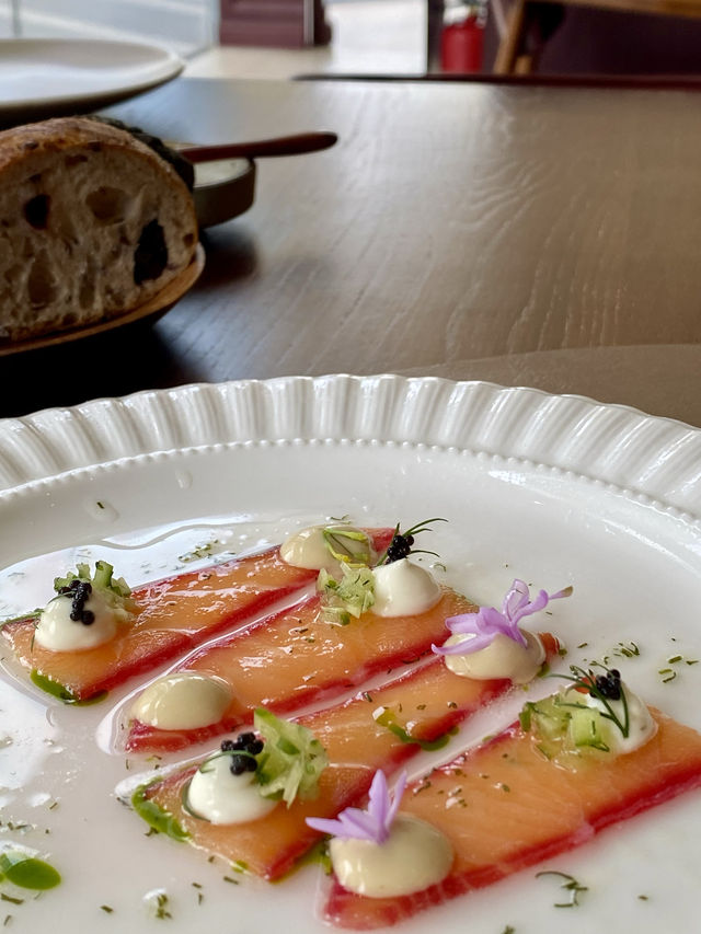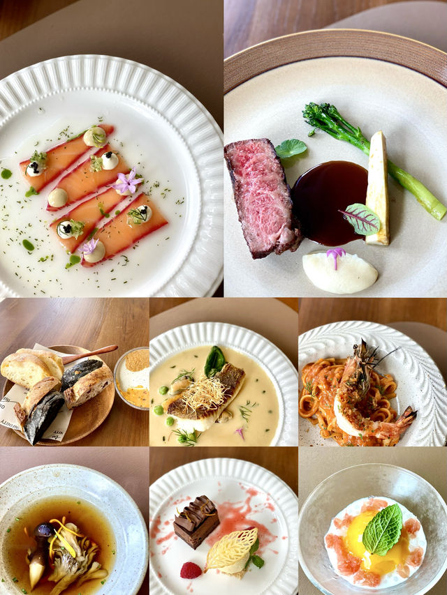 I must recommend this upscale French restaurant in Shenzhen to everyone, as every dish is a surprise🤩. The photo shows a single serving, and this set menu includes everything. In Hong Kong, the average cost would definitely be over a thousand, but in Shenzhen, it's only $298🤩🤩 The bread served before the meal is very tempting, with several different kinds of bread that are all delicious, with a nice chewiness. The accompanying eggplant puree and spicy butter sauce are very special👍🏻 The appetizer features this beetroot Norwegian salmon, and what's special is the variety of sauces on top, including black caviar sauce, sour yogurt sauce, etc., which are very refreshing and appetizing😍 French chicken soup, with added chicken fir mushrooms, maitake mushrooms, and cordyceps flowers, the soup is very clear and fresh, with a strong mushroom flavor. Pan-fried halibut, served with their unique sauce, is really fragrant. This sauce is even made with chicken broth, showing real dedication. The skin is crispy and the meat is tender. Prawn pasta, with the prawns already peeled, is very easy to eat without worrying about making a mess, which is really thoughtful. The long-awaited steak is finally served. I ordered it medium, which was just right. The texture is great, very tender and delicious, with a very aromatic meat flavor😊. It's accompanied by a red wine sauce and another sauce full of celery flavor. Finally, there's dessert, which is really a great value set meal. The grapefruit sorbet is really delicious and refreshing, and the final cake has an ultra-rich chocolate flavor, topped with vanilla ice cream, which is super super satisfying🤩🤩