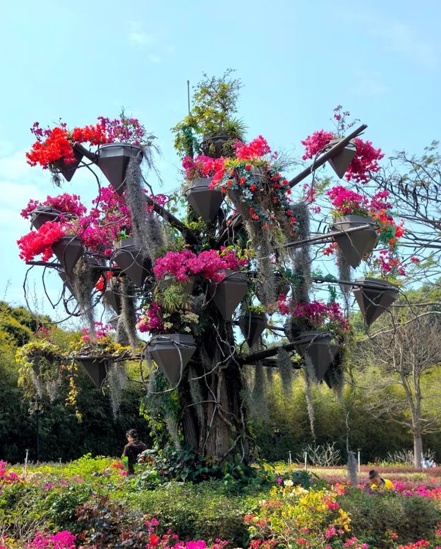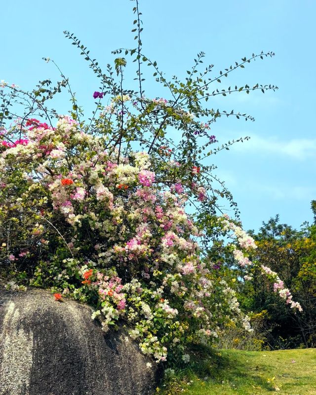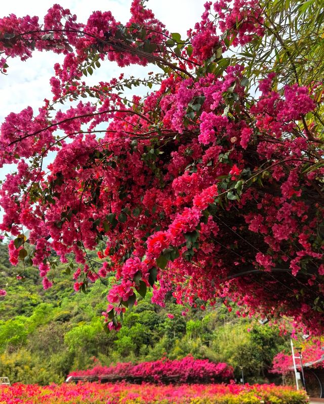 Hey everyone, I can't believe there are still people who don't know about Shenzhen's Bougainvillea Valley Park! The flowers here are absolutely stunning😍 As soon as you enter the park, it's like stepping into a vibrant world of flowers🌼. Bougainvilleas bloom freely across the mountains, red like fire, pink like clouds, and white like snow. The intertwining colors are so beautiful they'll captivate you👀. Each bougainvillea is full of life, with delicate petals glistening charmingly under the sunlight✨. As the breeze blows, the flowers sway gently, as if showing off their graceful dance💃. Every corner of the park is a perfect photo spot📸, whether you're going for a fresh, artistic, or sweet style. Stroll along the park's paths, breathe in the fresh floral scent, and immerse yourself in the beauty of nature. You'll feel completely relaxed🥰. Hey everyone, you must visit this beautiful Bougainvillea Valley Park. It's guaranteed to leave you with wonderful memories💖!