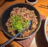 #September2025 Lunch at Qingchun Pumen in MixC World was a feast for my taste buds. Dishes like the quinoa and pepper tofu were refreshing and healthy, with a smooth texture, and the spicy pepper sauce was a pleasant surprise. The black truffle fried rice was fragrant, and the unique truffle flavor added a layer of depth to the dish. The organic dandan noodles were also delicious, with chewy noodles and a rich sauce that made them irresistible. For dessert, the red bean and coconut taro balls and the bean mochi were both delicious. The former had a perfect balance of coconut and red beans, while the latter's mochi had a soft texture that left a lasting impression. Overall, Qingchun Pumen offers healthy and creative lunch options, and is definitely worth a try!