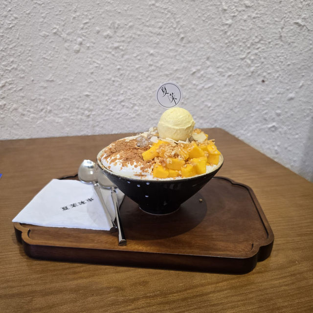 #September Good Places 2025 Summer back to the mainland to play, went to Gan Hang Ancient Town, read a lot of different culture and history of this place, played a lot of cards, halfway felt hot went to find a restaurant to eat and rest, tried this Xia Mo ice thing, personally felt quite tasty, chose matcha and mango, both delicious ice, rich ingredients, taste is also good, long walk to find a place to relax or eat a dessert. #Ganhang Ancient Town #Dessert