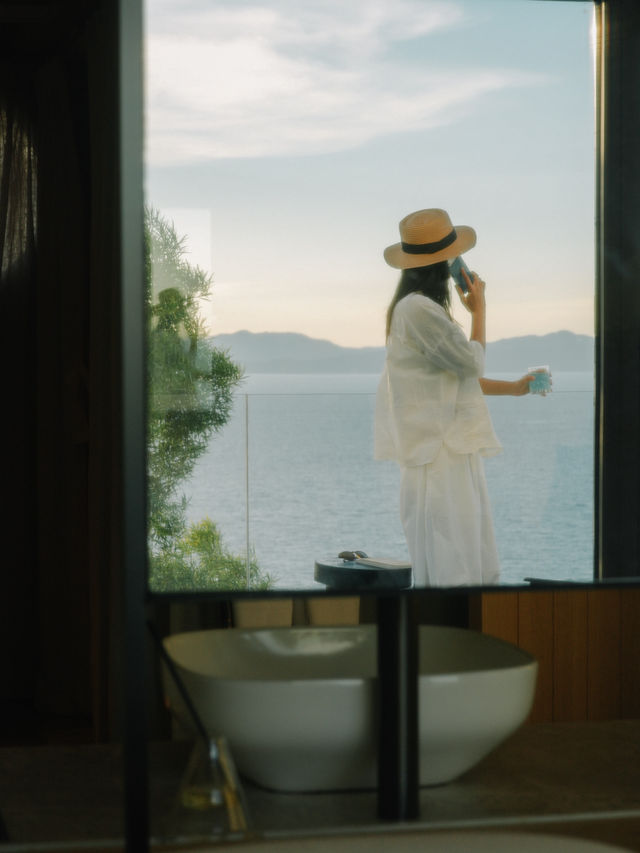 Drive to Dapeng Peninsula, grateful for the good weather, the entire journey is filled with the blue sea, and when I open the door upon arrival, I am still amazed by the sparkling waves 🌊 The room faces the sea, framing the ocean like a picture, in the afternoon, watching the sunlight fall on the sea like stars scattered into the ocean, in the evening, chasing the golden sunset light, jogging to the beach, a perfect sea sunset and the beautiful southern exclusive afterglow, at night, back in the room holding a glass of wine, the moon slowly rises, illuminating the entire sea horizon, accompanied by the sea, comfortably falling asleep in a slightly tipsy moment. The next morning, awakened by the alarm clock at 4:30 ⏰, the sky is still dimly lit, driving to the observatory to catch a seaside sunrise, a 20-minute drive pulls my body out of sleepiness, arriving at the observatory hill to watch a complete sea sunrise 🌅 From sunset to moonrise to sunrise, all captured in the viewfinder and in my mind, an all-in-one experience at the homestay. Staying at Miyue·Shenzhen Positano Cliff Sea View Homestay is truly a wonderful and healing experience, fulfilling my imagination of a perfect holiday.