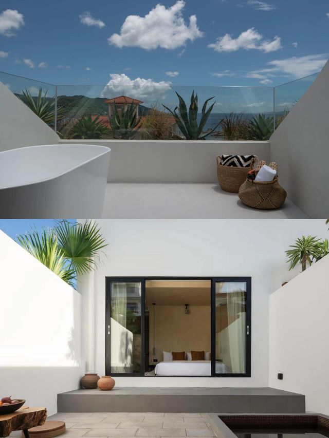 Facing the sea through floor-to-ceiling windows, listen to the waves and zone out Soak in the bath while enjoying the stunning sea view, the shimmering sea surface can truly heal all your current worries~ 🏨Accommodation: Hey Villa Xi Yu Jian Private Hot Spring Villa 📍Address: Building C3, Haibei Bay Villa Area, Nanao Street, Dapeng New District, Shenzhen 🚪Room The room is equipped with panoramic floor-to-ceiling windows and a private hot spring bath, allowing you to enjoy the magnificent sea view while lying in bed. The villa also offers a series of healing activities, such as singing bowl music therapy and THANN lemongrass essential oil spa, so you can heal your body and mind while enjoying the sea view. 👧🏻Thoughtful butler service The butler contacts you in advance before check-in There is a parking lot right in front of the villa, very convenient for friends driving by themselves.