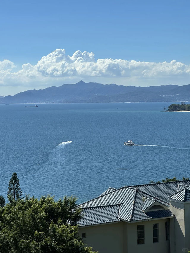 Yunhai Angel Bay: The sea and sky are one color, a place with super beautiful scenery. There are many places to check in here: Yunhai train, seaside shark pool, seaside Qianqiu... We had afternoon tea in an open restaurant with green grass by the sea. The weather was hot but there was no lack of gentle sea breeze. Looking at the blue sea and listening to waves hitting the shore, everything was so healing and beautiful #深圳云海天使湾