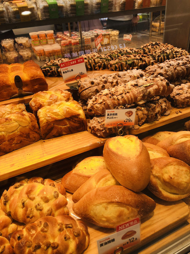 #September2025 Tucked away in the basement of King Glory Plaza at Shenzhen Guomao Station is a bakery 🧁, perpetually wafting with enticing aromas. The freshly baked bread each day is the main attraction. Through the clear glass, you can clearly see the chefs meticulously kneading and shaping the bread, each step akin to a spectacular performance. ❤️❤️❤️ In addition to a variety of creative bread flavors made on site, the shop also displays a dazzling array of exquisite cakes, from classic chocolate to refreshing fruit flavors. From the fluffy toast to the crispy croissants, each one is unique and worth savoring, making it a perfect spot for travelers and nearby residents to discover delicious treats.
