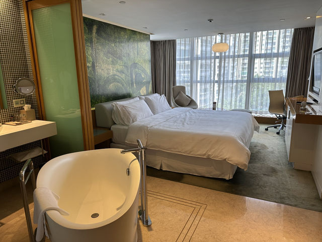 Address: Westin Yitian Shenzhen Environment/Facilities - There is a large swimming pool🏊🏻, gym, shopping mall downstairs Features - Convenient, Casual This time with my family, taking the children during the summer holidays. It's near Shenzhen Bay. Come here for three days and two nights to relax and rest. Choose this hotel, although a bit old, but has a large swimming pool, and too far from the Shenzhen Bay Port, do not have to sit for a long time. There are shopping malls and restaurants downstairs. Facilitate activities. Walk across the street. There is Window to the World. So overall it was good. The hotel, although not too new, was cleaned quite cleanly and overall was good. There was also a robot for supper to help deliver the room. And there are activities to do at the hotel. Take a swim or do some fitness. are very good.