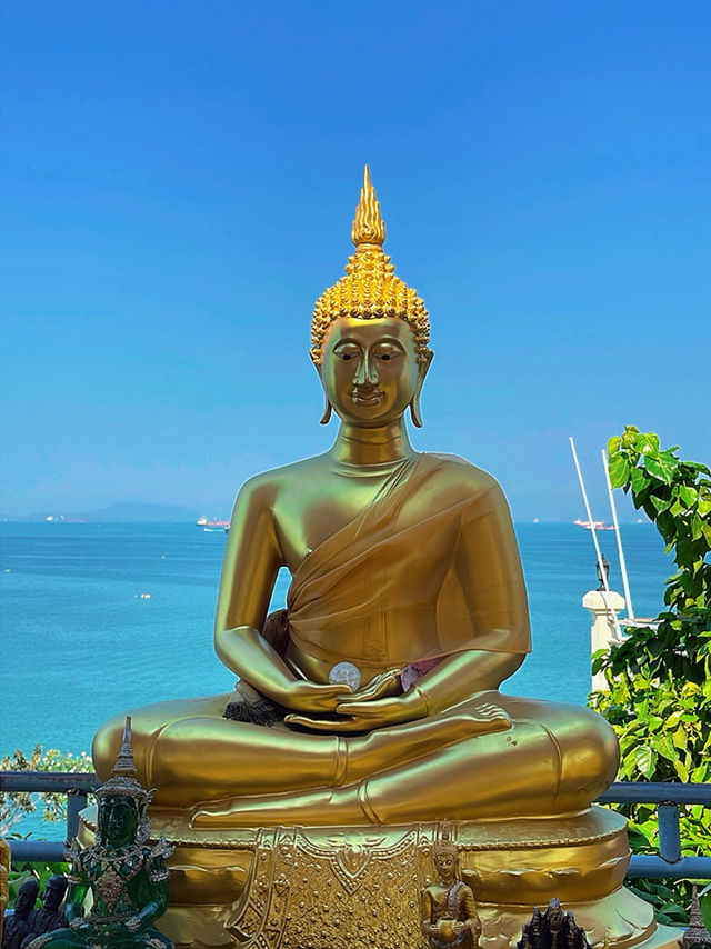#VisitChonburi Wat Koh Loi is an ancient temple, but there is no evidence of its construction. However, records of Wat Koh Loi indicate that it was built in 1899, which corresponds to the reign of King Rama V of the Rattanakosin period. At that time, Queen Savang Vadhana visited Ko Sichang and stayed overnight at Sri Maharaja Palace. She then ordered Chao Phraya Surasakmontri to invite Thammayut sect monks from Prachinburi Province to reside at Wat Koh Loi, where she offered food to the monks. Later, she offered royal Kathin robes at Wat Koh Loi Sri Maharaja. This is part of the recorded history of Wat Koh Loi. If you visit Wat Koh Loi, we recommend climbing the peak of Wat Koh Loi and entering the chapel or viharn of Luang Pho Koh Loi. Inside, a Buddha image known as "Luang Por Than Jai" and this Buddha image, according to the beliefs of the people of Sri Racha District, which have been passed down for generations, believe that King Rama V ordered the Buddha image from the Grand Palace to be enshrined in the chapel of Wat Koh Loi. This is just a speculation. As for Luang Por Than Jai, one can worship and pray for blessings, such as good fortune, success in business, or passing government exams. The chapel door is also interesting. The temple has carved a deity or angel to guard the sacred objects within the chapel or shrine of Luang Por Koh Loi. Outside, the gilded Ganesha resides. He can be used to pray for all kinds of blessings, especially for career advancement. Finally, find a beautiful vantage point for 360-degree panoramic photos. If you have the chance to visit Chonburi, stop by and pay your respects here. It's beautiful and unique, unlike anything you might imagine. Both the view and the Buddha image are breathtaking. It's well worth a visit.