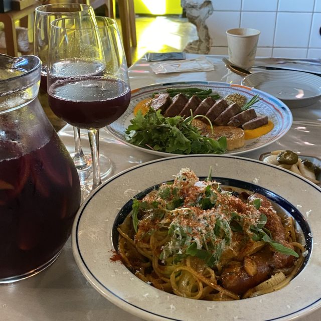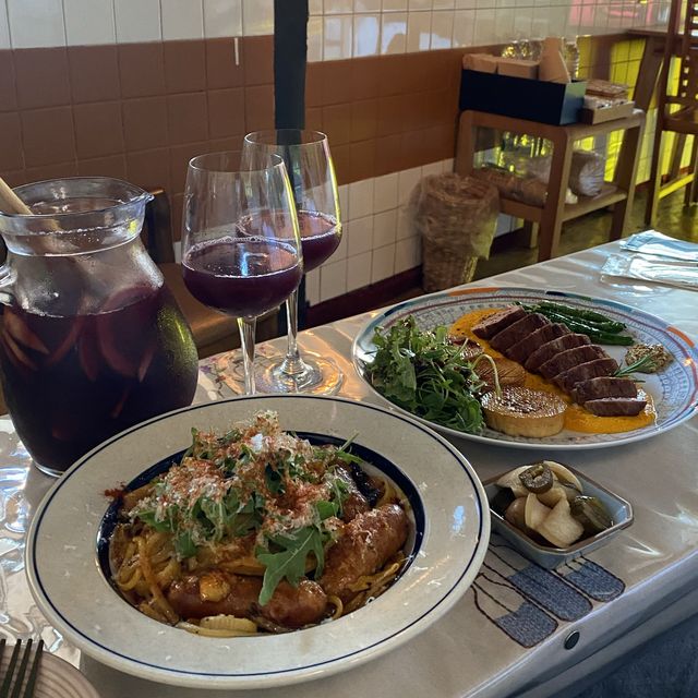 Address: 41 Jeongjo-ro 905beon-gil, Paldal-gu, Suwon-si, Gyeonggi-do Atmosphere/Facilities: Cozy and quiet What makes it special: It offers a variety of dining options, with three floors: basement, ground floor, and rooftop. Average price per person: 30,000 won (based on alcohol purchases) Rating: 4.5/5 While I was able to get in right away on my first visit, I failed on my second attempt, resulting in a long wait. I ordered steak and pasta. The pasta had a distinct aroma that I thought might be a bit of a mixed bag. The mushrooms in the steak were delicious. The meat was tender and perfectly sliced, and the sangria was especially delicious when enjoyed cold. The Barcelona beer I ordered later had a strong, barley-flavored flavor, and it was so delicious I still remember it. I recommend getting there early. The view from the basement is also really beautiful :) #WaitingRestaurant #SuwonRestaurant #HaenggungDongRestaurant #EuropeanSensibility #CityTrip #SteakRestaurant #SunsetRestaurant #RestaurantExploration