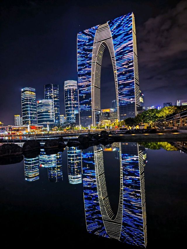 The scenery around Jinji Lake in Suzhou is truly amazing. You can start at Suzhou Times Square where you can find stunning modern views of the city. If you want you can also take the ferris wheel to see the lake from above! After walking around the ferris wheel you can go right of it to take a long walk along the lake. You will find European style looking restaurants along the way which looked very cosy. They play live music and the food looked very nice as well. After walking for a while you will eventually reach Dongfangzhimen which is the main city center of Suzhou! Have fun! #suzhou