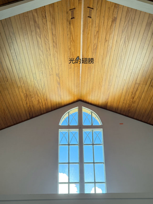 Lishan Jesus Church is more than just a building; it embodies the beauty of Taiwan's history, culture, and nature. Known as a "church in the clouds," it blends Gothic architecture, Aboriginal elements, and natural mountain scenery, offering visitors both a spiritual and visual experience. Located at No. 5, Fushou Road, Lishan Village, Heping District, Taichung City, at an altitude of approximately 2,011 meters, Lishan Jesus Church is currently one of the highest churches in Taiwan. Upon arrival at Lishan Jesus Church, one is immediately captivated by its tranquility and solemnity. The fresh air at high altitude creates a distinct atmosphere from the city as soon as one enters. The building itself embodies an elegant Gothic style, its white exterior appearing remarkably pure against the blue sky, symbolizing the purity and steadfastness of faith. Entering the church, the fragrant aroma of wood and the natural light filtering through the round windows create a tranquil and sacred atmosphere. The way the sunlight casts shadows on the floor truly creates a sense of "angelic presence." The Promise Terrace in the back offers expansive views of the mountains and sea of clouds, bringing peace of mind and letting go of worries. Thinking of the history behind this church, it's not just a symbol of faith; it's also a part of Taiwan's development and the memory of its time. Having survived earthquakes and desolation, its restoration, with its bells once again echoing through the valley, evokes a deeper sense of hope and rebirth. For me, the Lishan Jesus Church is more than just a tourist attraction; it's a place where I can find peace, converse with myself, and feel the power of heaven and earth and faith.