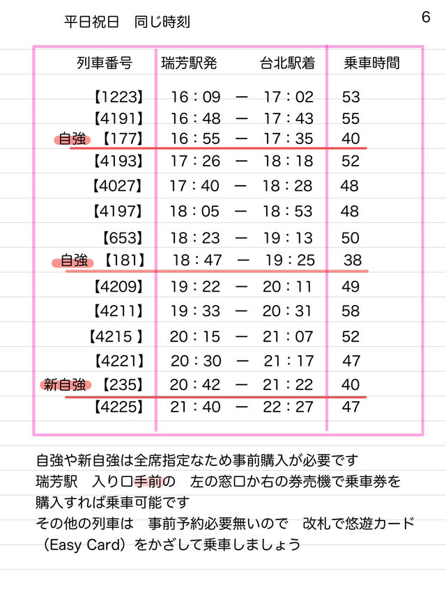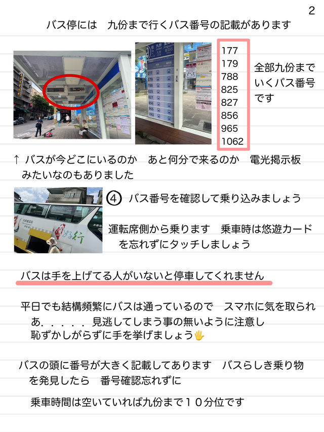 If you're traveling from Taipei to Jiufen by public transportation, there are two options. You can either take a bus directly to Jiufen, or Take the train to Ruifang Station and transfer to a bus to Jiufen. (Note: The bus stop is not near Taipei Station.) This article explains how to board the bus from Ruifang Station and the train timetable for the return trip to Taipei Station. *Please see the separate post for how to get from Taipei Station to Ruifang Station. Please see the post [From Taiwan Station to Shifen] m(_ _)m ◉ There's no bus timetable listed, but I didn't include it because bus timetables are practically nonexistent. The electronic signboards show real-time arrival times for each bus at the bus stop, so please refer to that. When I took a bus from Taipei to Jiufen, Jiufen is a mountain road, and the bus drivers are not as friendly as in Japan, so I felt unwell. Once sightseeing is no longer an option, I've decided to go to Jiufen by train and bus. 😅 Even if you wait for a bus on the way back and then take one heading towards Taipei, traffic around Taipei gets congested in the evenings. Taking the bus to Ruifang Station and then taking the train is less stressful, so I personally recommend it. However, it's still crowded, and if your train schedule doesn't work out when you arrive at Ruifang Station, you'll have to wait there too, so I recommend allowing yourself plenty of time and mental space. All things considered, it's best to allow yourself at least three hours. If you're waiting a little too long for the next train at Ruifang Station, I recommend waiting for it and enjoying some delicious Taiwanese food at Ruifang Food Street, which is open until 9 PM, before heading home. (I've written about Ruifang Food Street in another post, "Going to Jiufen? Check It Out!" m(_ _)m Even if you want to avoid the crowds, I personally think it's a waste to head home without waiting for sunset in Jiufen. I hope you enjoy a relaxing cup of tea in Jiufen, wait for the sun to set, and enjoy the lantern-lit scenery before heading home in a good mood. Because it's so beautiful! 🥹✨ I hope this helps you have a happy trip. #TaiwanTrip #Taipei #Jiufen #SelfTravel #BudgetTravel #JiufenOldStreet #MyTravelPlan #RecommendedTravelPlan