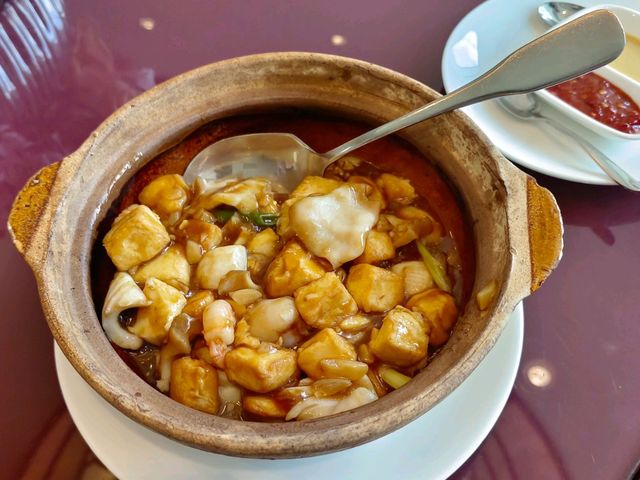 #CourtyardbyMarriottTaipei #YueLiangCantonese Cuisine All-You-Cantonese Revisiting YueLiang for a limited-time all-you-can-eat meal! 🥳 Thanks to my bestie for sharing the 20% off Eztable deal at $1030 per person. Not only does it offer a variety of dim sum, but we also curated nearly 50 classic Cantonese dishes, dim sum, and drinks for an all-you-can-eat meal for a limited time of 𝟭𝟮𝟬 minutes. Original price: $𝟭,280 + 10% off per person. Each order is limited to 6 items, with no limit on the number of servings. There are also 6 drinks on the menu, which are not included in the 6-item order! Since we visited on July 1st, we placed our first order as soon as we were seated. It included 3 roasted meats, scallops, fried clams, Yipin Eight Treasures Seafood Pot, and Panda Tofu Pot! The menu has been slightly adjusted compared to last year, but it's a significant upgrade! Everyone thought the flavors were more refined and delicious ❤️ We ordered six rounds of dishes in total, and the first four were mostly dishes we hadn't ordered before. Dishes we were particularly satisfied with included the roast duck, soy sauce chicken, slow-cooked braised beef cheek, stir-fried clams with basil, the Yipin Eight Treasures Seafood Pot, oyster sauce magnolia beef, barbecued pork puff pastry, and oyster chicken feet, among others. 🥳 Everyone thought these dishes were delicious, and the portions were mostly double. I think they've been adjusted, so they only serve larger portions when there's more people. Less recommended dishes include the shiitake mushroom chicken and the steamed spare ribs with rice flour! We ordered two rounds of desserts: mango pudding, white fungus and longan pudding, wolfberry and osmanthus cake, and the signature mung bean cake. They were all delicious! The service was a bit slow this time around, especially the first round, which took 20 minutes to arrive. We occasionally missed out on some orders, but we'll catch up once we're aware of them! Overall, the food was delicious, and the service was excellent. Highly recommended. 👍 8th Floor, No. 359, Section 7, Zhongxiao East Road, Nangang District, Taipei City