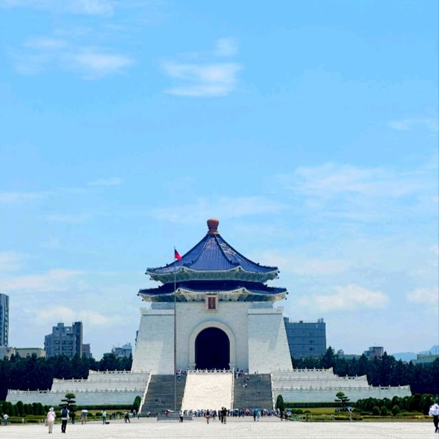Chiang Kai-shek Memorial Hall is a significant landmark in the heart of Taipei, known for its beauty, tranquility, and rich historical stories. 🇹🇼✨ 📍 Location Located in Zhongzheng District, Taipei, right next to MRT Chiang Kai-shek Memorial Hall Station (Red & Green Lines), Exit 5. It's just a short walk away. ⏰ Opening Hours The garden area is open daily from 5:00 AM to 12:00 AM. The main building and museum are open from 9:00 AM to 6:00 PM (closed on Mondays). 🌟 Highlights - The white memorial building with a blue roof stands 76 meters tall, a prominent symbol in the city. - The 89 steps leading up to the hall represent Chiang Kai-shek's age. - On the upper floor, there's a large statue of Chiang Kai-shek, with guards standing watch and a must-see hourly changing of the guard ceremony. - Surrounding the hall is Liberty Square, a spacious area perfect for photos, featuring the grand Gate of Great Centrality and Perfect Uprightness, as well as the National Theater and Concert Hall buildings.
