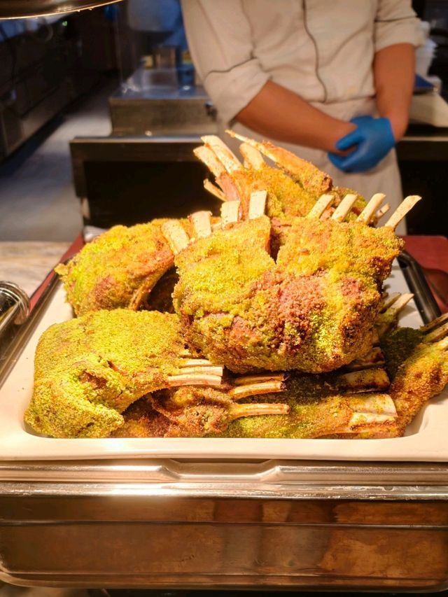 #JR-East-HotelTaipei #Polyan Japanese Restaurant Japan Food Festival Themed Buffet Part 2, running from September 5th to November 4th Hot dishes feature Tokyo Station Curry Beef, Beef Don with Garlic Steak Sauce, the ever-popular Beef Wellington, Garlic Butter Baked Oysters, Nagoya-style Fried Chicken Wings, and more. The raw food section features four types of seared nigiri: salmon, wagyu beef, Angel Red Shrimp, and smoked duck breast, along with a variety of special appetizers. Desserts also feature many Japanese classics, such as brown sugar warabi mochi, sesame cheese, sesame fiorentino, seared Japanese cheese, and red bean soup. Today's most anticipated dishes are JR's classic Provence lamb chops and Beef Wellington. JR's French-style grilled lamb chops are exceptional, tender and delicious when cooked medium-rare. Be sure to eat them hot; the fat is too noticeable when they're cold and lose their flavor! For those who prefer a raw dish, ask the chef to grill it again for a more fragrant finish! The Beef Wellington was quite disappointing. It felt like it wasn't made from fillet, so it was a struggle to cut and chew, and it had a distinctly fishy smell. 🥹 Luckily, the seared wagyu steak, Tokyo Station curry beef, and wagyu donburi were all quite good, satisfying my beef craving. 🥰 There was a long line for the Iberico pork tonkotsu ramen in the freshly cooked section, but the broth was a bit salty, so be careful if you're afraid of the pork smell! The new Japanese desserts were pretty good, and the Japanese sesame cheese and charred cheese were delicious. ❤️ Two dishes had a noticeable burnt smell today, one of which was the fried noodles. Fresh Meat said the other chicken dish had a similar smell. Be careful if you're dining there. 😅 Weekday lunch/dinner $1480 + 10% Weekend lunch/dinner $1680 + 10% Holiday afternoon tea $980 + 10%