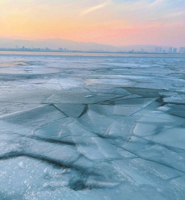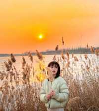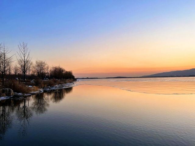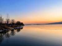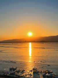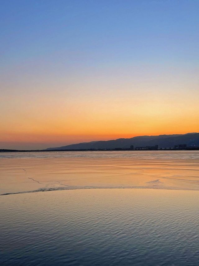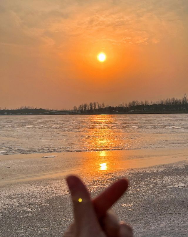 ||| A winter limited edition romance unique to Taiyuan🫶. Glacier Sunset🌅||| A winter limited edition romance unique to Taiyuan🫶🏻 It's so photogenic, you can enjoy different unique sceneries at every moment🥳 Sunset📸 time: 5:00—5:30 PM (The orange sunset🍊 is the most beautiful moment) You can also go half an hour earlier, Jinyang Lake is quite big, you can walk around the lake and take pictures of other sceneries. 🧡 You can check the sunset weather in advance on the App Shooting location: Jinyang Lake No.5 entrance (pier), No.1 pier 🤗: It's a bit cold by the lake after sunset. Jinyang Lake is really a blessing for those who love photography. Unlocked another good place I want to go again next time, Check in different beautiful scenes