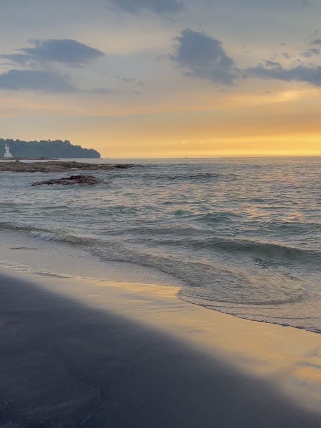 (Nang Thong Beach) or Black Sand Beach, Phang Nga Province. Black sand beach is made from tin ore. It is black in patches, but if you go during sunset, it is beautiful in another way. It is suitable for watching the sunset. 🌥️ 📍 Tambon Kukkak, Amphoe Takua Pa, Phang Nga Province is one of the beautiful beaches in the Khao Lak area. #LifeAddictedToTravel #BlackSandBeach