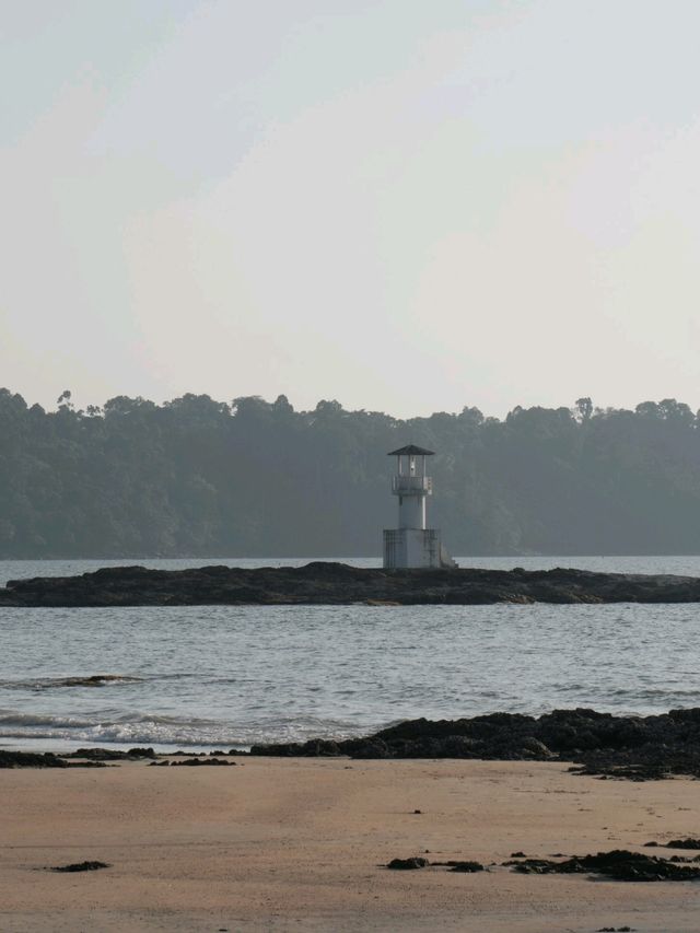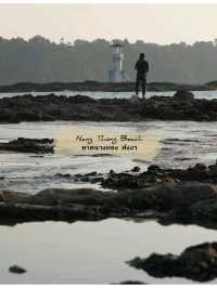 #TravelChat 🌊: Nang Thong Beach, Phang Nga 📝: The beach has rocky walkways and fine sand. The beach is beautiful and peaceful, with some of the sand being black from the former mining operations. There's a unique lighthouse in the middle of the sea, which is especially beautiful in the evenings. Come watch the sunset. 📌: J6VW+XRF 91 Phetkasem Road, Khuekkhak, Takua Pa District, Phang Nga 82190