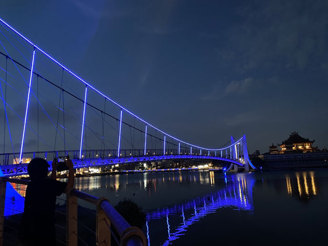 Longtan Bridge is a must-visit spot, and right in the center of Longtan, there's a temple worth exploring. Nearby, you'll find boutique coffee shops offering delicious brunch and dinner options, including unagi (eel) rice. We highly recommend spending a day strolling around Longtan, Taiwan. In the evening, the Longtan Bridge lights up with colorful illuminations, creating a romantic atmosphere perfect for a walk with your significant other while enjoying the breeze and scenery. 📍Address: Longtan Bridge
