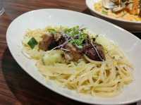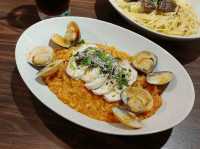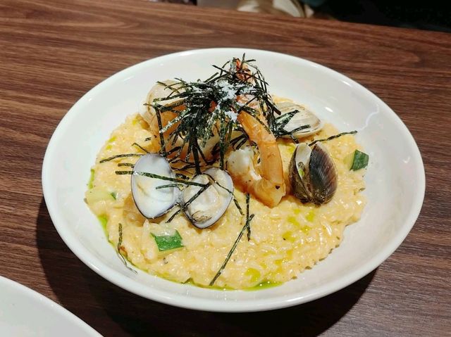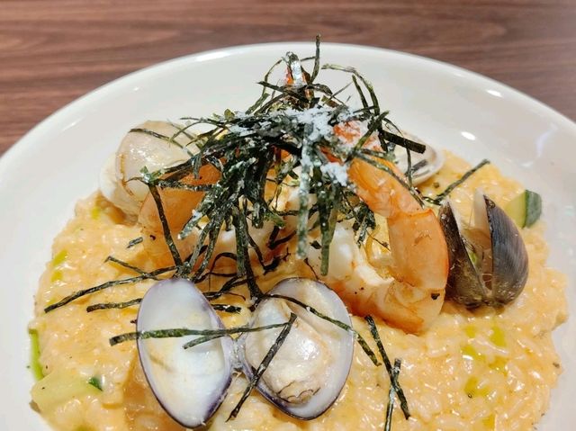 Bu Wan Western Bistro offers rice dishes, pasta, and light meal platters (sandwiches). Main courses can be upgraded to set meals (Set A/B/C), all of which include a 45 NTD drink paired with different combinations. Indoor seating includes two four-person tables and three two-person tables. The restaurant provides restrooms but does not offer Wi-Fi. What’s on the menu today? ➡️ Masala Tomato Clam Chicken Risotto $239 Mildly spicy + today’s dessert + 45 NTD drink $129 Brownie & Garden Black Tea (lightly sweetened) The rice grains in the risotto have a great texture, and the sauce is well-reduced, locking in the flavors. The chicken is tender, and the clams are large. Adding a bit of spice enhances the taste—highly recommended! ✅ ➡️ Spicy Mentaiko Shrimp Risotto $269 I must say, the chef’s plating is very thoughtful. The shrimp are already peeled, which is a big plus. This dish is better than what I recently had at an Italian restaurant near Zhongshan Station. This flavor is top-notch 👍🏻. I’ll definitely order this again next time, perhaps trying it with spaghetti instead 😋. ➡️ Herb Butter Seared Pork Tongue Tagliatelle $259 I didn’t realize this was pork tongue! It’s my first time trying it. I’ve had beef tongue before, but it’s usually thinly sliced and doesn’t leave much of an impression. The pork tongue here is thick and has an amazing texture—soft, tender, and evenly coated with fat. However, it does have a distinct pork flavor 🐷🐷🐷. I’d say this is a unique taste you won’t find elsewhere 🤣. Check out more Taoyuan food spots 📍Bu Wan Western Bistro There are plenty of roadside scooter parking spaces nearby. Address: No. 203, Zhongyong Street, Bade District, Taoyuan City Hours: 11:00 AM–3:00 PM, 5:00 PM–9:00 PM