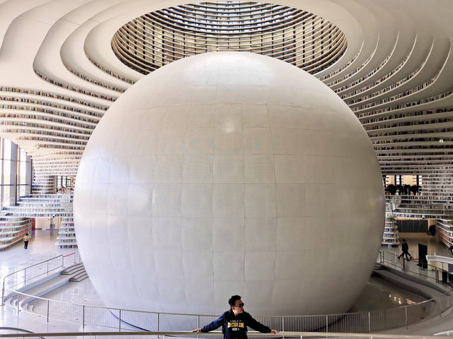 #springitinerary #discoverchina #library #thingstodo Some spaces don’t just hold books—they hold breath, and Binhai Library does both the moment you step inside. Known as “The Eye of Binhai,” this striking landmark in Tianjin is more than just a library—it’s a masterpiece of form and intellect. I arrived as evening settled, when the gentle glow from the arched glass façade met the flowing curves of the interior, transforming the space into something otherworldly. The central hall is a cascade of white, wave-like shelves rising floor to ceiling, wrapping around a glowing sphere—like standing inside a futuristic eye that quietly observes the city’s rhythm. Inspired by the concept “mountain of books has paths to reach wisdom,” the design doesn’t simply store knowledge—it elevates it. Here, you don’t browse books. You ascend into them. Every angle offers a new composition for photographers, scholars, or dreamers. It’s no wonder it’s hailed as one of the world’s most beautiful libraries—and even appeared as a backdrop in the hit series Joy of Life. To visit is to enter a dialogue between light, space, and story. The Binhai Library doesn’t just invite you to read—it invites you to reflect.