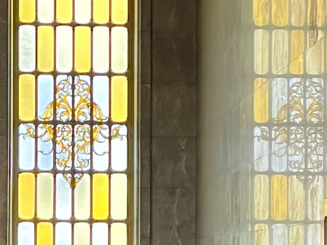 [Tokyo National Museum, Main Building] The brilliance of stained glass is reflected on the marble