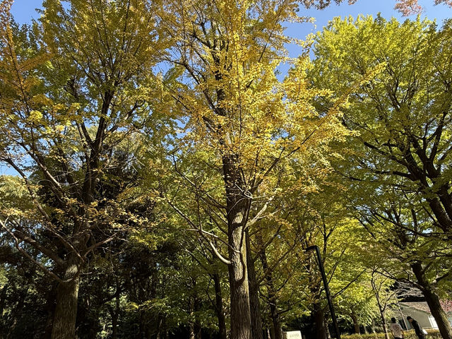 On this crisp autumn day, I set out on a journey to Yoyogi Park, eager to witness the legendary golden ginkgo scenery. As soon as I entered the park, I was greeted by a stunning sea of yellow. Sunlight filtered through the dense ginkgo leaves, casting beautiful shadows on the ground. Beneath my feet lay a thick layer of golden fallen leaves, rustling softly as I walked, as if playing an autumn concerto. I couldn’t help but bend down to pick up a perfectly intact ginkgo leaf, carefully admiring its unique fan shape, raising it toward the blue sky to savor the beauty of autumn. Besides the ginkgo trees, other trees in the park had also donned their autumn attire. Some leaves had turned vibrant red, intertwining with the yellow ginkgo leaves to create a colorful masterpiece. In the center of the park, a massive pine tree stood proudly, showcasing a distinctive and majestic beauty. I strolled along the wide paths, watching people leisurely walk under the sunlight, feeling the tranquility and vitality this urban oasis brought. After my walk in the park, my growling stomach led me to a ramen shop called "AFURI." The shop’s decor was simple, bright, and modern. I ordered a bowl of ramen that looked incredibly delicious—the broth was clear, the noodles springy, topped with large slices of chashu pork, a soft-boiled egg, and seaweed, garnished with refreshing mizuna greens. Just looking at it made my mouth water. This warm bowl of ramen perfectly capped off my autumn trip to Yoyogi Park. This journey not only immersed me in the autumn beauty of Yoyogi Park but also allowed me to savor delicious ramen. The perfect combination of nature and cuisine made this autumn even more unforgettable.