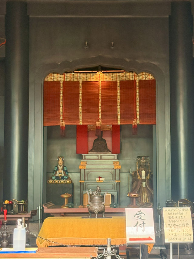 Yushima Seido, also known as Tokyo's Confucian Temple, was originally established by Tokugawa Tsunayoshi, the fifth shogun of the Tokugawa Shogunate. He relocated the original Shensheng Hall from Ueno to this site, setting up the Taiseiden and merging the surrounding area under the name Seido. This site has nurtured many outstanding talents in Japanese history. Institutions like Shoheizaka Gakumonjo and Tenmonkata, which later merged to form the predecessor of the University of Tokyo, were based here. After the Meiji Restoration, this location served as the headquarters for the Ministry of Education and the National Museum. It was also the birthplace of Tsukuba University, a cradle of Japanese education. Unfortunately, the original structure was destroyed during the Great Kanto Earthquake. The current Taiseiden was designed and built in 1935 by Ito Chuta, one of the most influential architects of his time. Ito Chuta is also known for designing Meiji Shrine, Heian Shrine, Kashihara Shrine, and Tsukiji Honganji Temple. The combination of mythical creatures like the Oni Ryuko and divine fish on the roof showcases Ito Chuta's ingenuity. While exploring the garden, you'll come across a 4.5-meter-tall Confucius statue, donated by the Taipei Lions Club. It is the largest Confucius statue in the world. Additionally, the side hall features a Youzu Vessel, symbolizing the story of "tilting when empty, upright when balanced, and overturning when full." 📍Address: 1 Chome-4-25 Yushima, Bunkyo City, Tokyo 113-0034, Japan 🚗 A 5-minute walk from Ochanomizu Station.