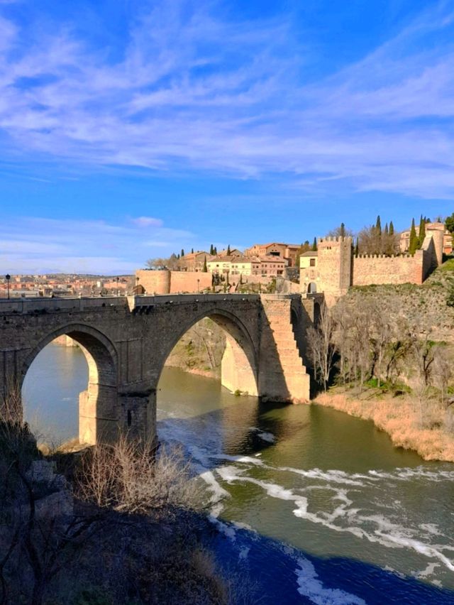A Journey Through Spain's Central Plateau ~ Toledo (Region) Originating from Romanesque architecture, this bridge is well-preserved. As it spans the Tagus River, you can observe a rich variety of flora and fauna. The bridge features two well-maintained arches at its entrances. Be sure to capture photos of this bridge from the city, and if possible, do so at night when the bridge is illuminated. During the day, photos taken from the bridge looking towards the river create a dreamlike scene.