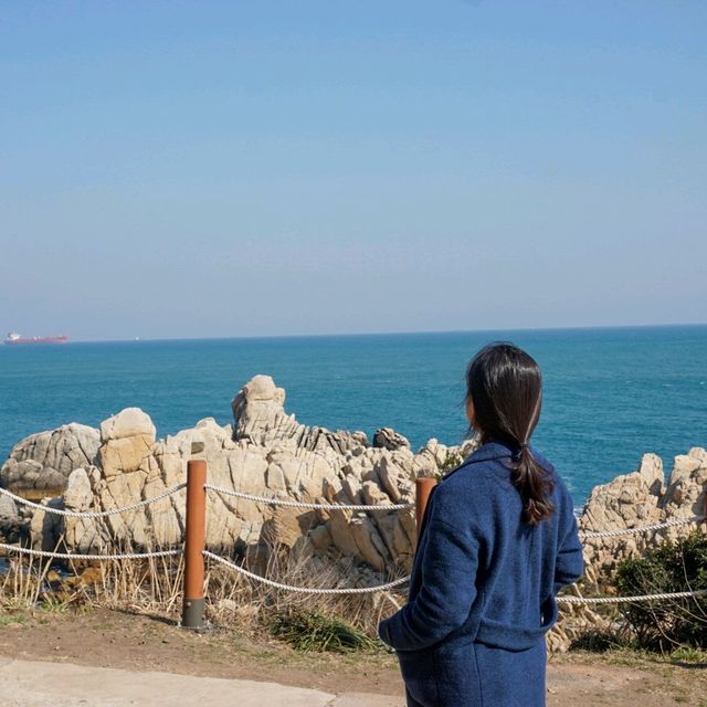 [๐ฐ๐ท๐Ulsan, Daewangam๐๐ฐ๐ท] How about a romantic Daewangam Park in Ulsan for a winter trip?๐ท My hometown is Ulsan, so I can take a bus for about 50 minutes to get to Daewangam Park. Every time I go, I am amazed and moved by the beauty of nature :) I personally think the East Sea is really beautiful, but this place is especially beautiful because it has a deep emerald color๐ Daewangam is connected to a rock on land by a bridge, so you can walk along the bridge and see the sea and rocks up close.'แด' ๐If you visit Ulsan, I highly recommend visiting this place๐ #wintertrip #wintersea #Korea #Ulsan #Daewangampark #Daewangam #vacationtrip #lifetripdestination #safetravel #newyear #korea #ulsan #ะบะพัะตั #ัะปััะฐะฝ