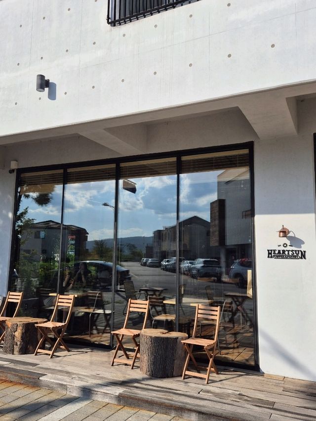 Heart Sun Coffee & Pastry Songjeong Branch โ€“ A wood-toned healing cafรฉ filled with sunlight