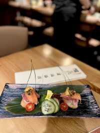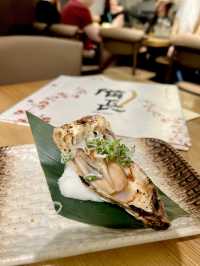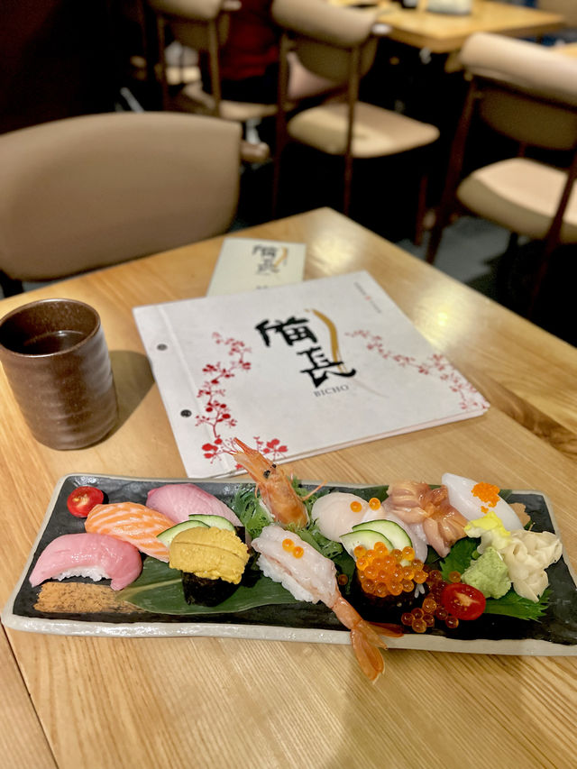 This Japanese restaurant in Causeway Bay offers sushi🍣, sashimi, skewers, and more. Once seated, you'll be served an appetizer of vegetable sticks for $28, which has a refreshing taste. We ordered the special sushi🍣 platter for $320, which includes toro, salmon, yellowtail, red shrimp, scallop, squid, live ark shell, salmon roe, and sea urchin. The portion of sushi is very generous and fresh. The toro is fatty and luscious, the salmon and yellowtail are tender, and the red shrimp and scallops are sweet. The squid is fresh, the live ark shell is crunchy☺️, and both the salmon roe and sea urchin bring a rich seafood flavor. It's satisfyingly abundant! The thick-cut beef tongue for $78 is substantial and refreshing, served with a special sauce. The lychee pork roll for $38 combines the sweet and sour taste of lychee with pork quite well. The grilled yam with plum sauce for $32 is seasoned with plum sauce, giving the dish a hint of sweet and sour taste, very appetizing. The scallion and garlic rock oysters for $48 are fresh, with the aroma of scallion and garlic enhancing the delicious taste of the rock oysters. Finally, the fried shrimp tempura🍤 for $118 is crispy and fragrant. 📍 Bincho 26th Floor, Macau Yat Yuen Center, 525 Hennessy Road, Causeway Bay