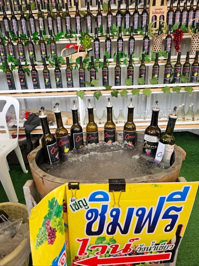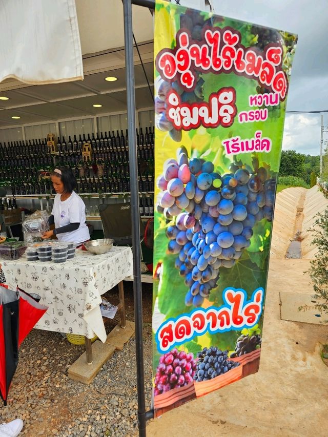 Hello, today I will review a roadside vineyard in Wang Nam Khiao. I came in and saw it so I parked. Overall, it was okay. The owner of the vineyard welcomed me well. There are wines for tasting and trying. I also bought some grapes. The dried ones were delicious. If anyone passes by this area, try to zoom in. You won't be disappointed. Fresh from the vineyard and the price is friendly. The price here is not expensive at all. Starting at only 250 baht per bottle, there are many grades and types. You can try for free before deciding because there are many flavors. Personally, I like strawberries. The price is very good. Grapes are only 100 baht per box. Fresh from the vineyard. Big, firm, crispy, sweet, and delicious. You can try them before deciding to buy. There is parking available. #KhaoYaiVineyard #WangNamKheaw #VisitWangNamKheaw