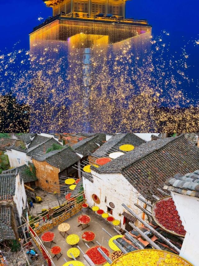 When it comes to fall travel, Wuyuan is a must-see destination. Named the most beautiful village in China by National Geographic, Wuyuan is about to enter its most colorful season. In addition to Huangling, which was featured in National Geographic in 2018, Wuyuan is home to many ancient villages. After visiting Wuyuan six times, I've put together this fall travel guide for you. Just follow my lead! ⏰Best time to visit: Late November to mid-December. 📅Fall foliage calendar: 🌽Autumn harvest: Year-round. 🍅Persimmons: November to January. 🍁Maple leaves: November to December. 🌼Chrysanthemums: November to December. 🍂Ginkgo: December. 🚦Transportation: 🚄High-speed rail: Arrive at Wuyuan Station. 🚗Public transportation between villages is inconvenient, so we recommend renting a car or hiring a driver. Shuttle buses are available to Huangling and Wunvzhou. ▪️DAY 1: Departure → Likeng → Huangling, stay overnight in Huangling. ▪️DAY 2: Huangling → Shangtan Village → Longwei Village → Sanyan Bridge → Wunvzhou, stay overnight in Wunvzhou. ▪️DAY 3: Wunvzhou → Fengshan Village → Chaguan Village → Hongguan Village → Return. ✅Must-see attractions in Wuyuan: ✔️Likeng ⭐️⭐️⭐️⭐️: White walls, black tiles, red lanterns, small bridges, and flowing water. A lively town. ✔️Huangling ⭐️⭐️⭐️⭐️⭐️: The most famous village in Wuyuan, featured in National Geographic's list of the most beautiful villages. The autumn harvest in the mountains is like a painting. ✔️Shangtan Village ⭐️⭐️⭐️: Filming location for the movie "I Am Not Madame Bovary." You can take a bamboo raft under the big camphor tree at the entrance of the village. ✔️Longwei Village ⭐️⭐️⭐️: A small stream called "Longwei" flows through the village, creating a tranquil paradise. ✔️Sanyan Bridge ⭐️⭐️⭐️⭐️: Known as the "Little Xinjiang of Jiangxi," this ancient three-hole bridge stands quietly on the vast grassland, where cattle and sheep graze leisurely. ✔️Wunvzhou ⭐️⭐️⭐️⭐️: A recreation of the Tang Dynasty's prosperity, Wunvzhou's night view is mesmerizing. Iron flowers, iron kettles, fireworks... all incredibly romantic. ✔️Fengshan Village ⭐️⭐️: Home to an ancient pagoda with a history of over 400 years, this is also the ancestral home of Jin Yong. ✔️Chaguan Village ⭐️⭐️⭐️: Named a classic ancient village in China by National Geographic, the village entrance features an ancient bridge from the Southern Song Dynasty. An old man leads a cow across, as if time has stood still. ✔️Hongguan Village ⭐️⭐️: A non-commercial ancient village with flowing streams. Home to a thousand-year-old camphor tree, it was famous for ink-making during the Ming and Qing Dynasties.