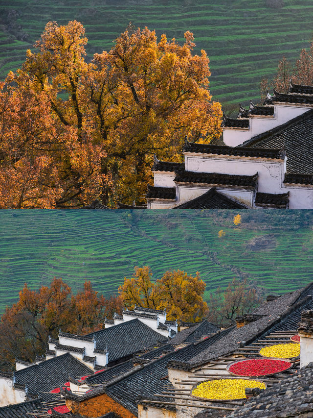 Once Huangling's harvest is out to dry, you know autumn has arrived. As soon as the Beginning of Autumn passes, this ancient village perched on the cliff gradually takes on the most intense autumn colors. Fiery red chilies, golden corn, persimmons hanging full on branches— All permeate with the taste of autumn, absolutely making your trip worthwhile. 📍Location: Huangling Scenic Area, Wuyuan, Jiangxi 🕐Admission Time: 8:00-21:30 (Night tour lights turn on at 18:40) ⭐Recommended Playtime: 2 days 1 night (Staying overnight in the ancient village is the essence!) 🎫Ticket: 145 RMB/person (140 RMB if purchased one day in advance) 🚡Cable Car: Ticket includes round-trip cable car. There are two cable car lines: Line A is the Ancient Village Cable Car, and Line B is the Terraced Fields Cable Car (Line A operates until 21:30 at the latest). ❤️Recommended Itinerary Ancient Village Tunnel → Ancestral Hall Square → Huaxi Water Street → Tianjie Street → Patriotic Wall → Sun-drying Workshop → Yixin Building → Wugui Hall → Autumn Sun-drying Viewing Platform → Strange House → Photography Bar → Luminous Forest 📷【Recommended Photo Spots】 🌾Huaxi Water Street: Misty water, dotted with lights, known as "Jiangxi's Little Lijiang," with absolutely stunning night views. 🌾Patriotic Wall: On the way to Tianjie Snack Street, this angle allows you to capture the complete Patriotic Wall and the surrounding well-arranged Huizhou-style buildings. 🌾Wugui Hall Sun-drying Platform: As a large platform for sun-drying autumn produce, various crops are neatly arranged, perfect for photos! Every photo taken here is filled with the taste of autumn~ 🌾Sun-drying Workshop: Overlooks the entire ancient village's sun-drying panorama, with a three-story viewing platform. Each level offers different sun-drying scenes from every household, a popular photo spot. 🌾Photography Bar: Excellent for capturing sunset, evening glow, and night views, and you can also photograph the Patriotic Wall. 🌾Nostalgia Experience: Blacksmith shop, street barber, popcorn machine, making Mochi – instantly transport yourself back to the 1980s. ✨Night Tour Highlights: 🌠Lighting Ceremony of Ten Thousand Lights (starts at 18:30) In the evening, overlook the ancient village from the third floor of the Photography Bar or Wugui Hall, count down together as ten thousand lights illuminate, with the sunset glow reflecting on the blue tiles. 🌠Lantern Night Tour Bench Dragon Lantern Parade, Paper Lantern Crane Dance, dragons soaring and fish leaping – super exciting. 🌠Magic Light Show Step into the Luminous Magic Forest, combining technology and fantasy, with mysterious cave exploration, heart-shaped ponds... 💯 interactive experience. 🚋Accommodation: It is recommended to stay at Huangling's B&B - Yishanju Meisu, where you can enjoy stunning views from the hotel. Staying at the hotel includes cable car and ticket fees, and there's a dedicated hotel channel for the cable car upon arrival, with a butler driving you to and from the hotel, which is very convenient. 🍲Dining: Tianjie Restaurant Sun-drying Feast 🌶️Average 80 RMB per person to taste the "Sun-drying Feast" - stir-fried pork with wild vegetables, stir-fried pork with dried chili shells... various dried seasonal vegetable platters, savory and chewy, absolutely perfect with rice~