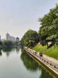 Surrounding the base of Xi'an's ancient City Wall is a beautiful, tranquil park that offers a peaceful escape from the urban bustle. This green belt is perfect for leisurely walks, with shaded paths, traditional pavilions, and gentle streams. Locals practice tai chi, dance, and play traditional instruments here, creating a serene atmosphere. The park is especially lovely in the morning and at dusk, providing a perfect complement to a visit to the wall itself—a chance to experience ancient history amidst natural beauty and local life. #travel